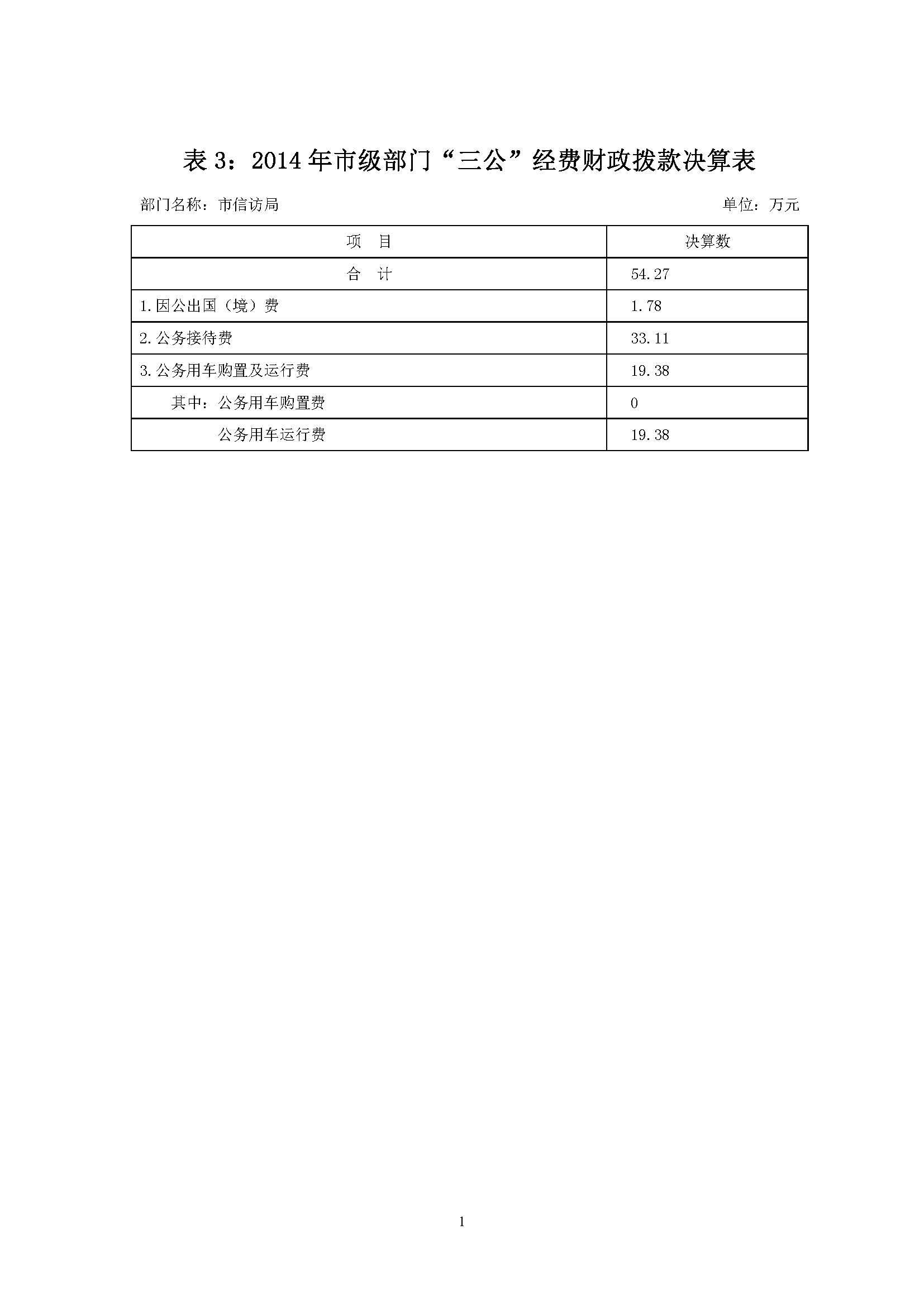 2.公务接待费:2014年公务接待费支出33.11万元。主要用于单位按规定开支的各类公务接待费用。本部门全年共安排公务接待40批次,3270人次(含信访定额工作性用餐如20元/份盒饭等)。
