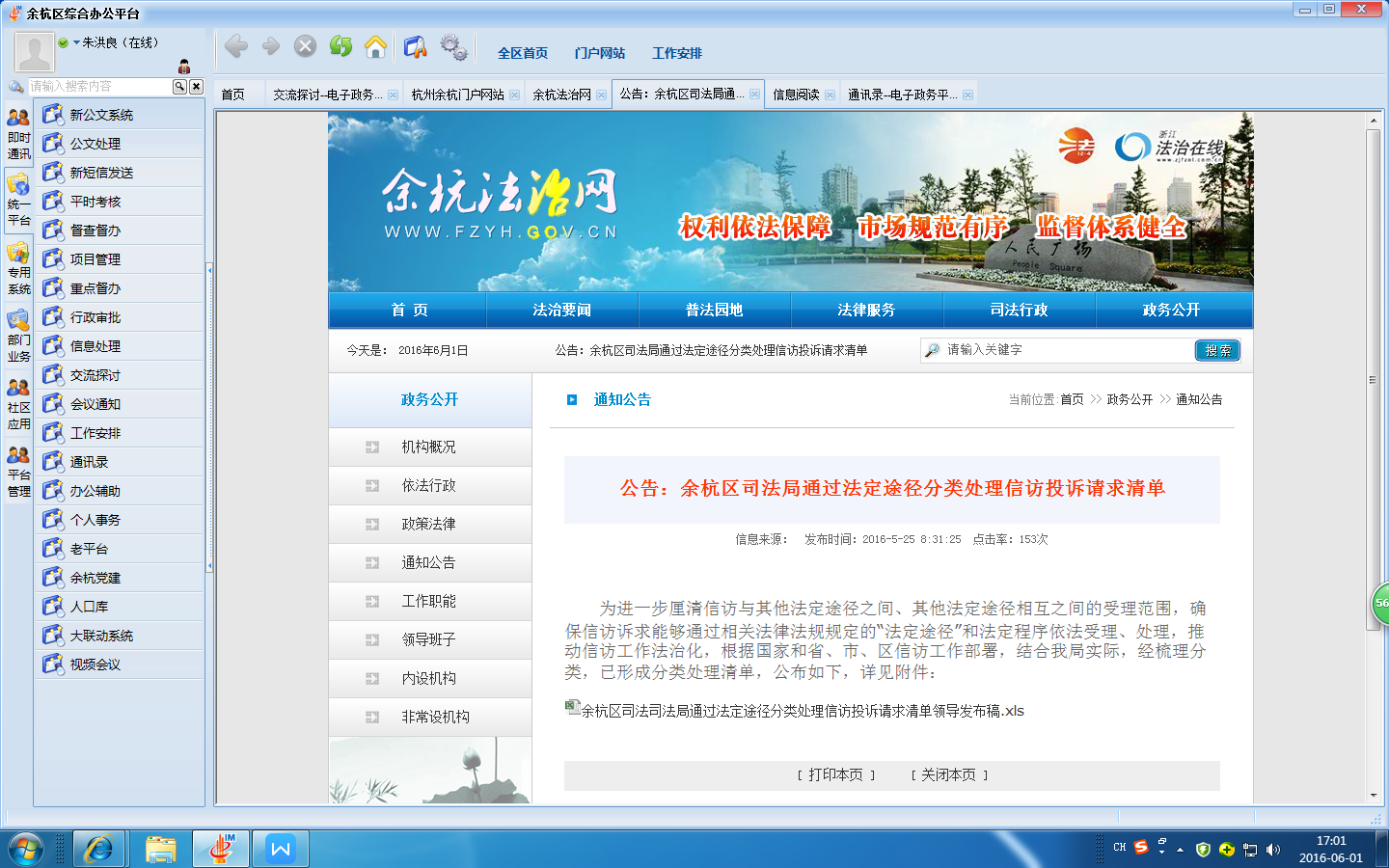 余杭区以“大会”+“小会”推动、“线上”+“线下”互动、“专人”+“专班”联动等“三个+”模式,全力推进信访投诉请求清单梳理落实工作。截止5月底, 25家事权单位已全部完成法定途径分类处理信访投诉请求清单梳理、审查和对外公布等相关工作。